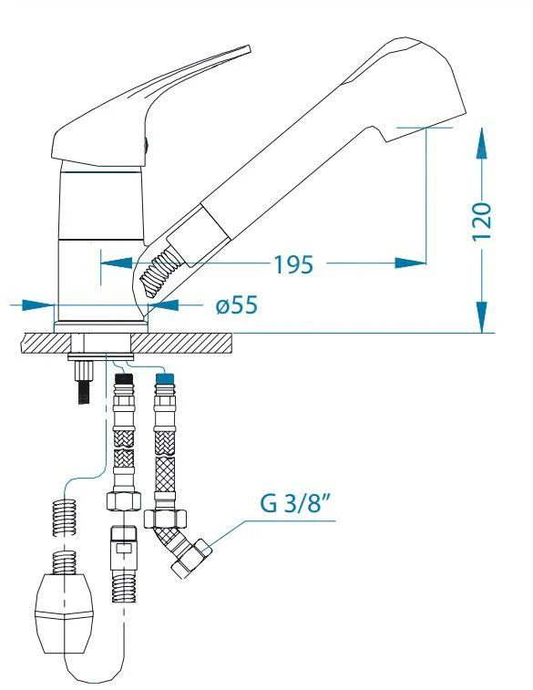 Mitigeur de cuisine AM 20 avec douchette extractible et interrupteur