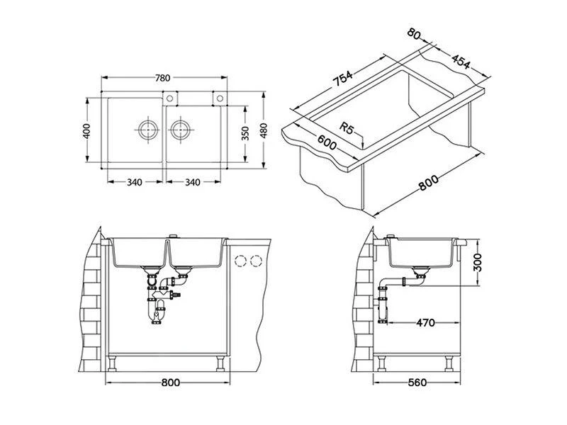- convient pour une installation sur plan de travail (pour un meuble d’une largeur de 800 mm)