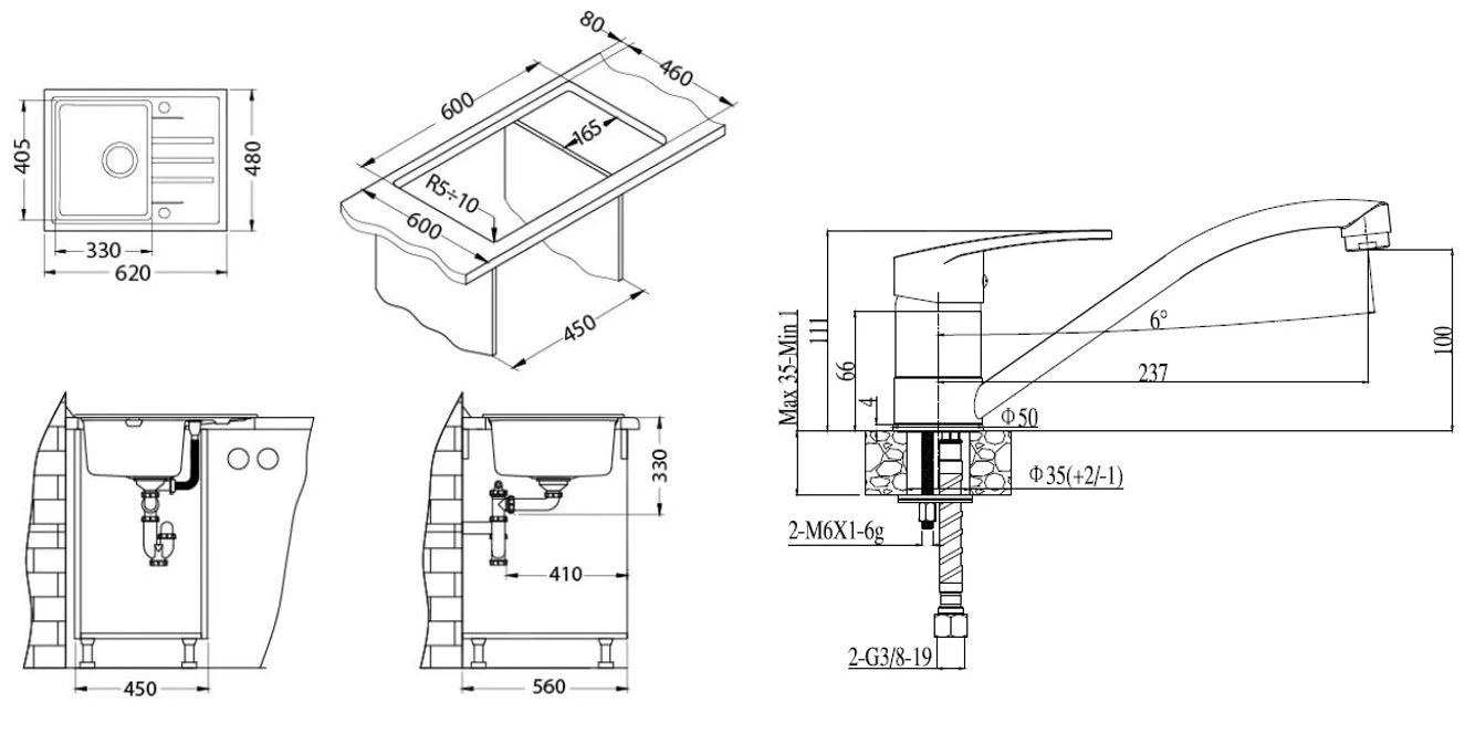 - avec trop-plein dissimulé Full-Volume dans l’espace de l’égouttoir