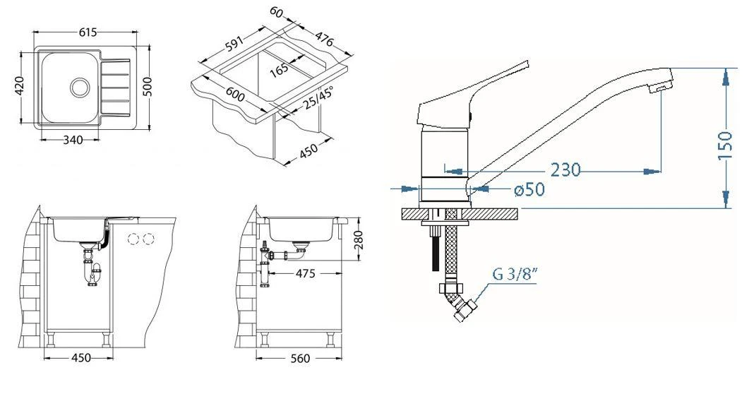 Ensemble évier de cuisine Line 110, robinet Riviera et cadeau