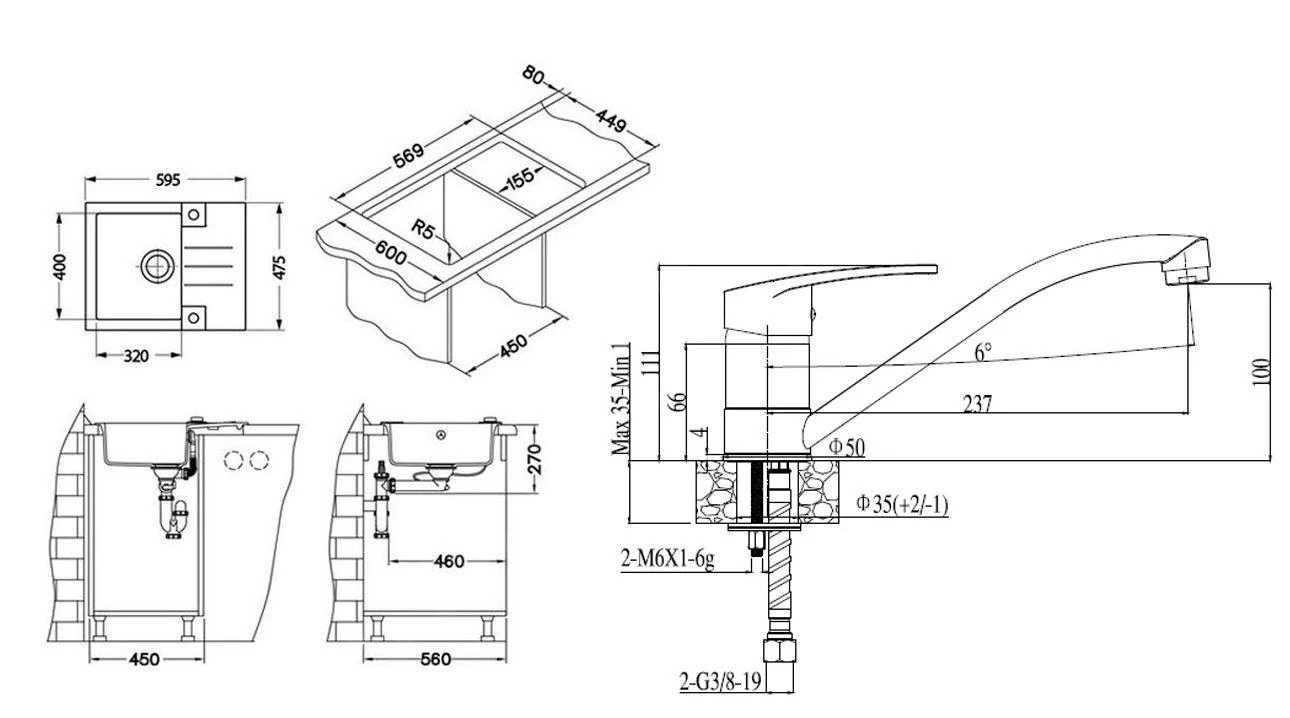 - convient pour une installation sur un plan de travail (pour un meuble d’une largeur de 450 mm)