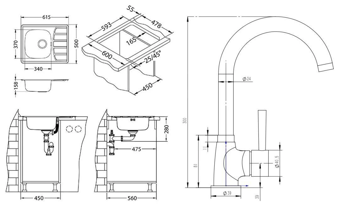 Ensemble évier de cuisine Zoom 10, robinet Karina et cadeau