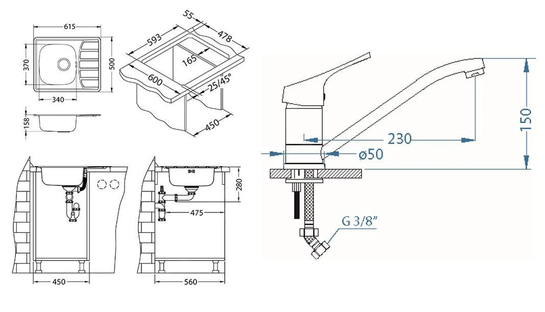 Ensemble évier de cuisine Zoom 10, robinet Riviera et cadeau