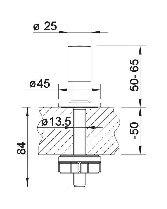 - hauteur de la partie au-dessus du plan de travail 50 à 65 mm