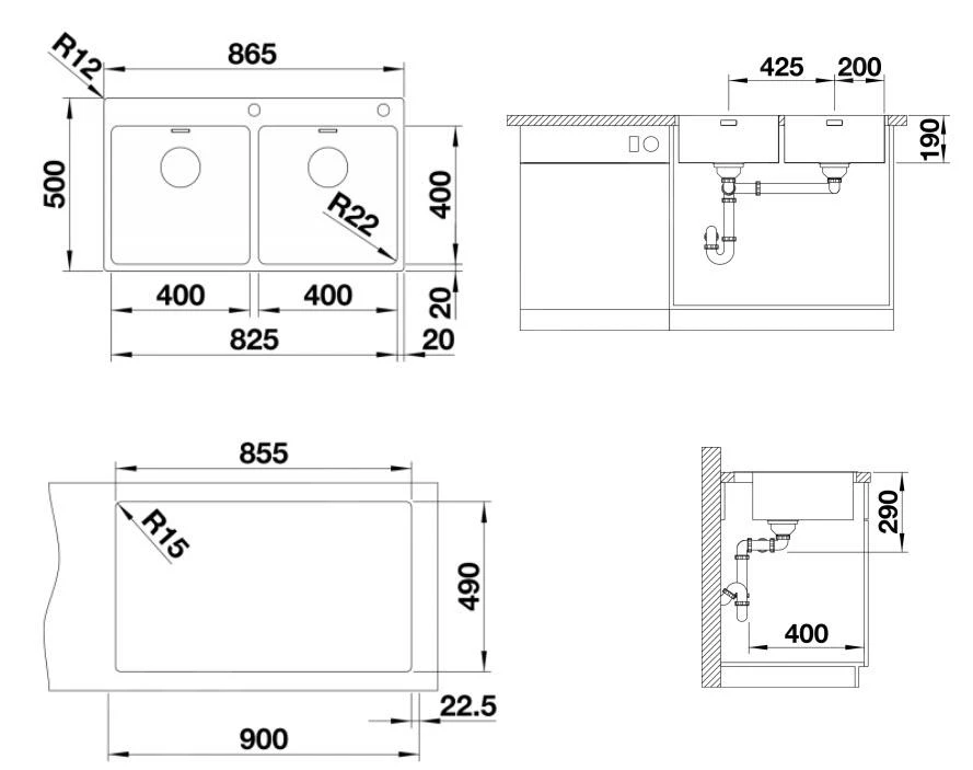 - dimensions totales : 865 × 500 × 190 mm (Lxlxp)