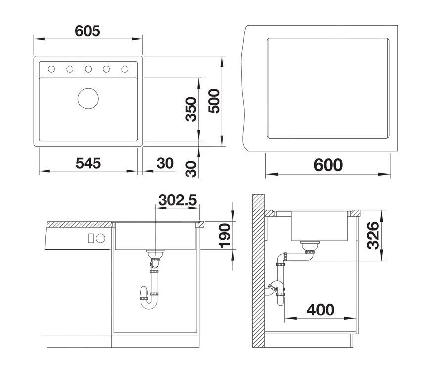 - destiné à être monté au ras du plan de travail ou sous le bord du plan de travail
