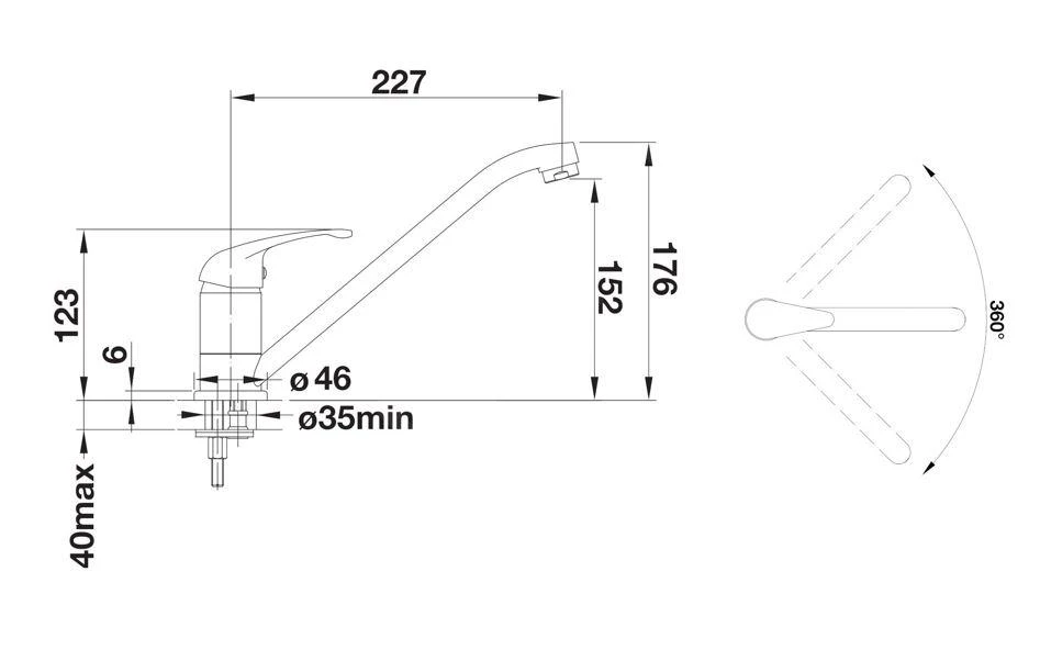- bec pivotant, amplitude de rotation 360°