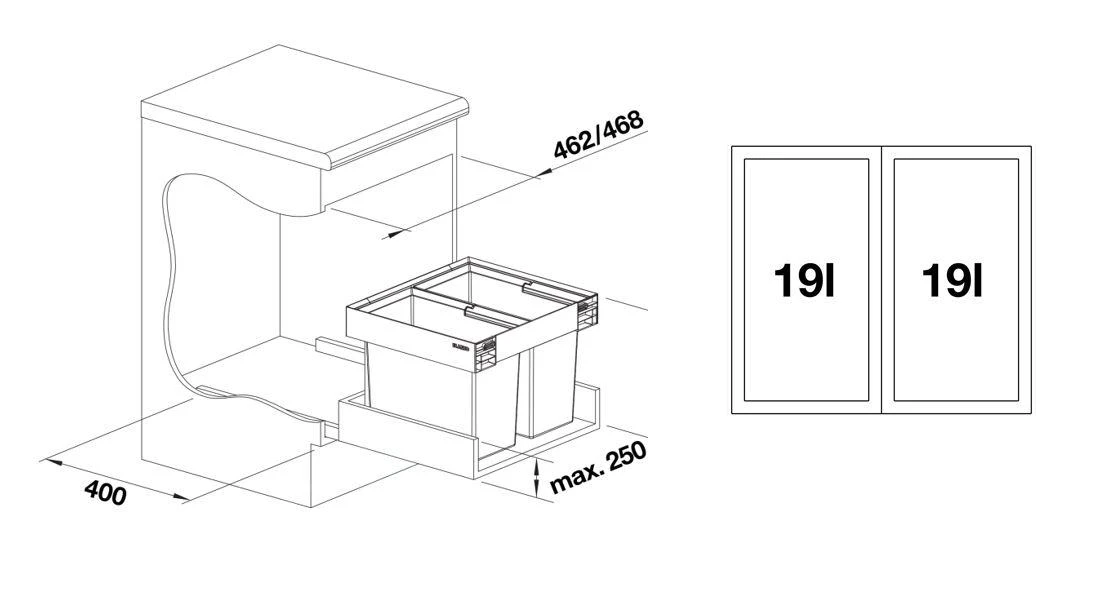 Blanco Flexon II – Poubelle Encastrable, Divisée, Volume 38 L 526639