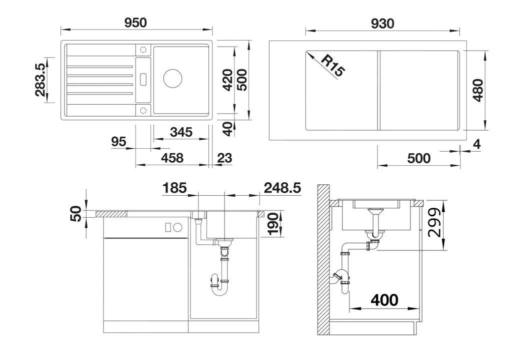 - bonde à panier 3 1/2⁄ 2“ InFino®avec commande du vidage (bouton rotatif)