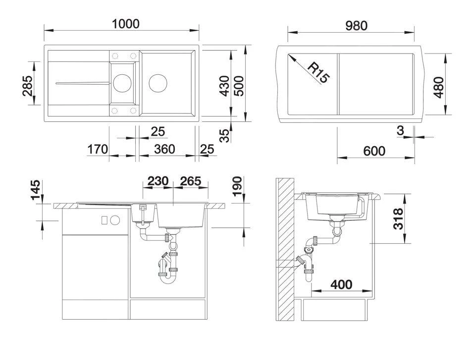 - garniture de vidage et de trop-plein avec siphon gain de place