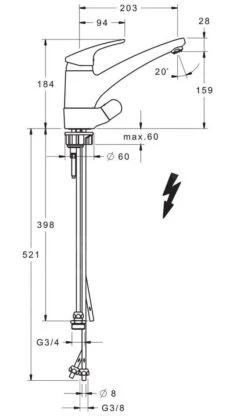 La planche à découper en composite avec placage de frêne en option ne peut être placée sur le bord de l’évier que si le diamètre du robinet de cuisine est inférieur à 48 mm.