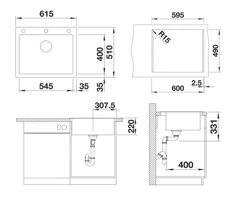 - garniture de vidage et de trop-plein avec siphon gain de place
