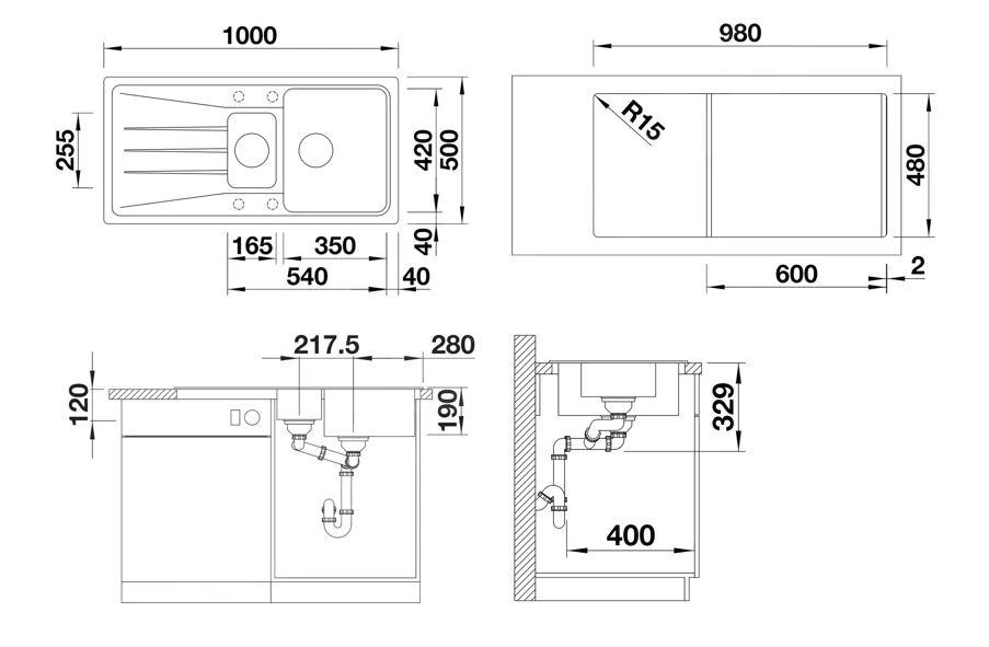 | Côté plus long de l'évier [mm] | 1000 |