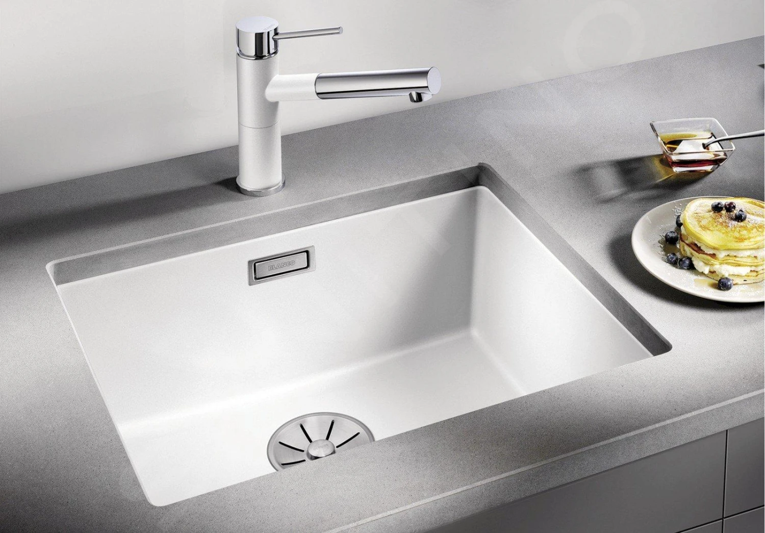Vous aimez la couleur blanche ? Vous avez envie que votre évier de cuisine ressemble à ça ? Préférez le silgranite dans un blanc élégant et choisissez Blanco Subline 500. Combiné au plan de travail gris, il a l’air luxueux. Il est fabriqué en SILGRANIT PuraDur, un matériau très durable, dur mais parfaitement lisse. Les dimensions globales de l’évier sont de 530 x 460 mm, tandis que les dimensions de l’évier lui-même sont de 500 x 400 mm. La profondeur de l’évier est de 190 mm. L’évier est conçu pour être installé sous le plan de travail. L’ensemble comprend un raccord de qualité avec un trop-plein C-overflow®, un kit de vidage avec un tuyau peu encombrant et une bonde à panier InFino® pour remplacer une bonde inesthétique.