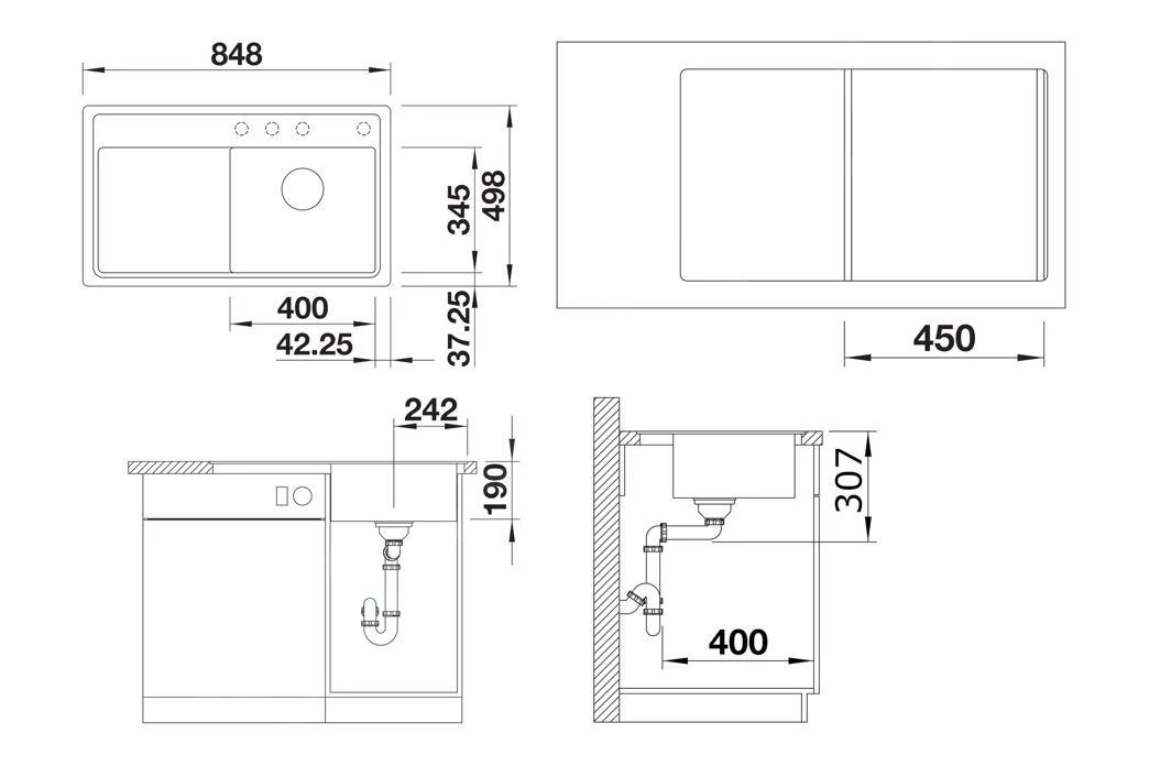 - dimensions de l’évier 400 × 345 mm