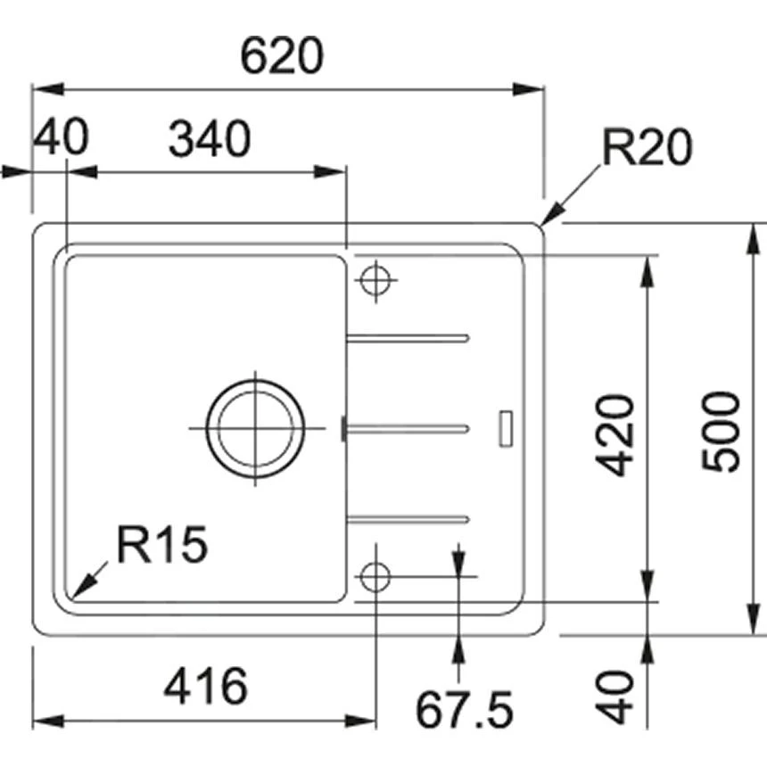 Découpe : 600 × 480 mm (rayon 20 mm)