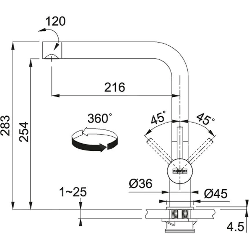 Le mitigeur est placé sur l’égouttoir incliné, il est légèrement incliné.