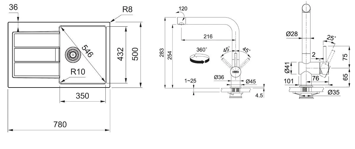 Évier en Tectonite Sirius 2.0 S2D 611-78 pour montage par le haut