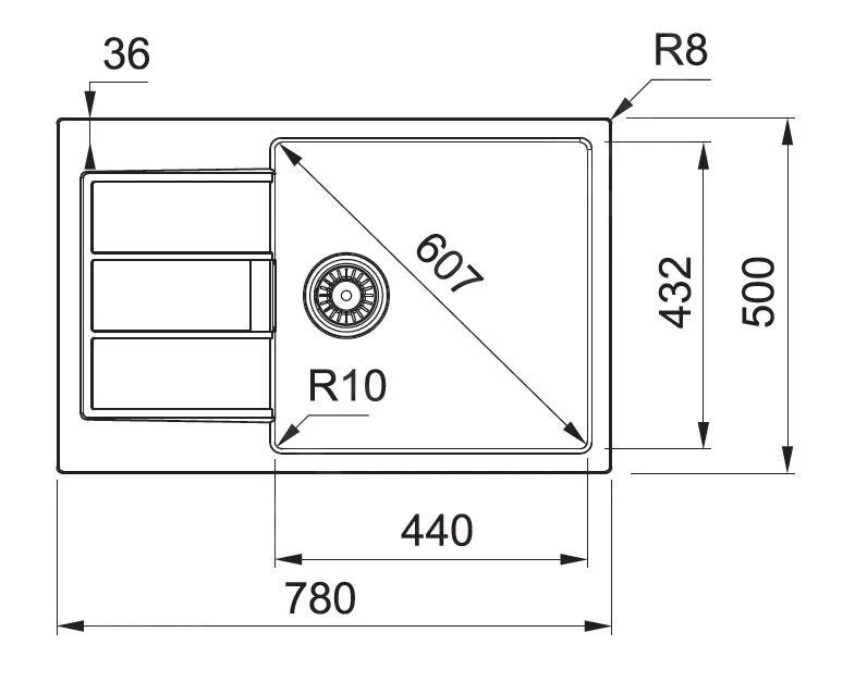 - égouttoir réversible, peut être positionné à droite ou à gauche