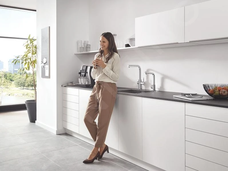- un mitigeur moderne et compact qui s’intègre parfaitement dans toutes les cuisines