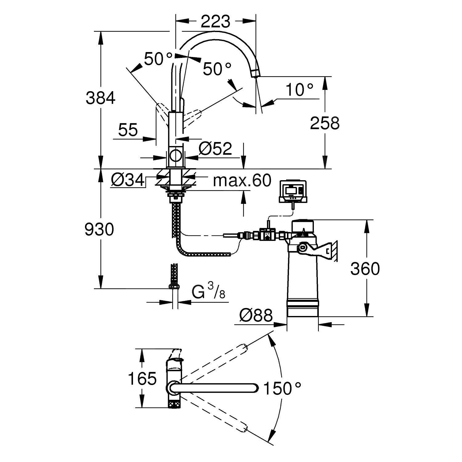 Ce robinet de cuisine de la gamme GROHE Blue Pure propose de l’eau de table fraîche directement au robinet. L’eau s’écoule à travers un filtre pour piéger les substances indésirables, comme le chlore ou les métaux lourds, qui peuvent provoquer une odeur désagréable ou impacter le goût de l’eau. Le filtre à particules fines permet de retenir les éléments les plus petits, rendant ainsi l’eau pure, fraîche et avec un bon goût. Le filtre rend également l’eau moins calcaire, son remplacement est rapide et sans aucune difficulté. Votre robinet vous propose donc une eau fraîche, parfaitement débarrassée des substances indésirables, également adaptée à une utilisation dans les équipements ménagers. Vous remarquerez aussi certainement que votre café et votre thé seront nettement meilleurs.