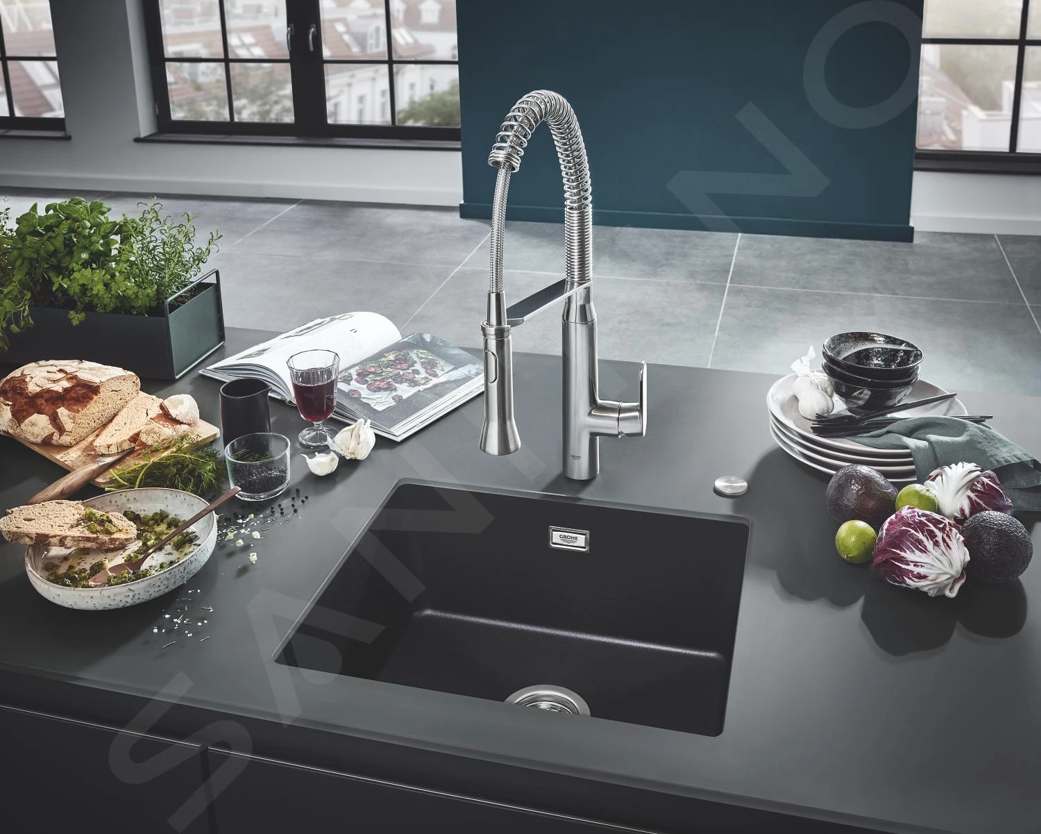 Ce mitigeur de cuisine GROHE se base sur les meilleures habitudes de travail en cuisine. Sa fonctionnalité a été conçue sous le regard de spécialistes. Il contient une douchette professionnelle qui peut être tournée sur 360° et qui permet de choisir un jet fin ou un jet beaucoup plus fort. Grâce à sa grande rotation, il permet de remplir ou de rincer les grandes casseroles, éventuellement de nettoyer la surface de travail beaucoup plus facilement qu’auparavant. Ce bec haut rotatif décuple encore la praticité de ce mitigeur. Malgré toutes ses fonctions avancées, l’installation de ce mitigeur de cuisine est très simple grâce à son système d’installation. La surface chromée étincelante GROHE StarLight conserve sa belle brillance même après plusieurs années d’utilisation intense. Un excellent choix pour votre cuisine !