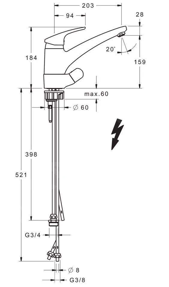 Paffoni Chef – Mitigeur D'évier Avec Bras Flexible, Chrome/noir Mat CH179CRNO