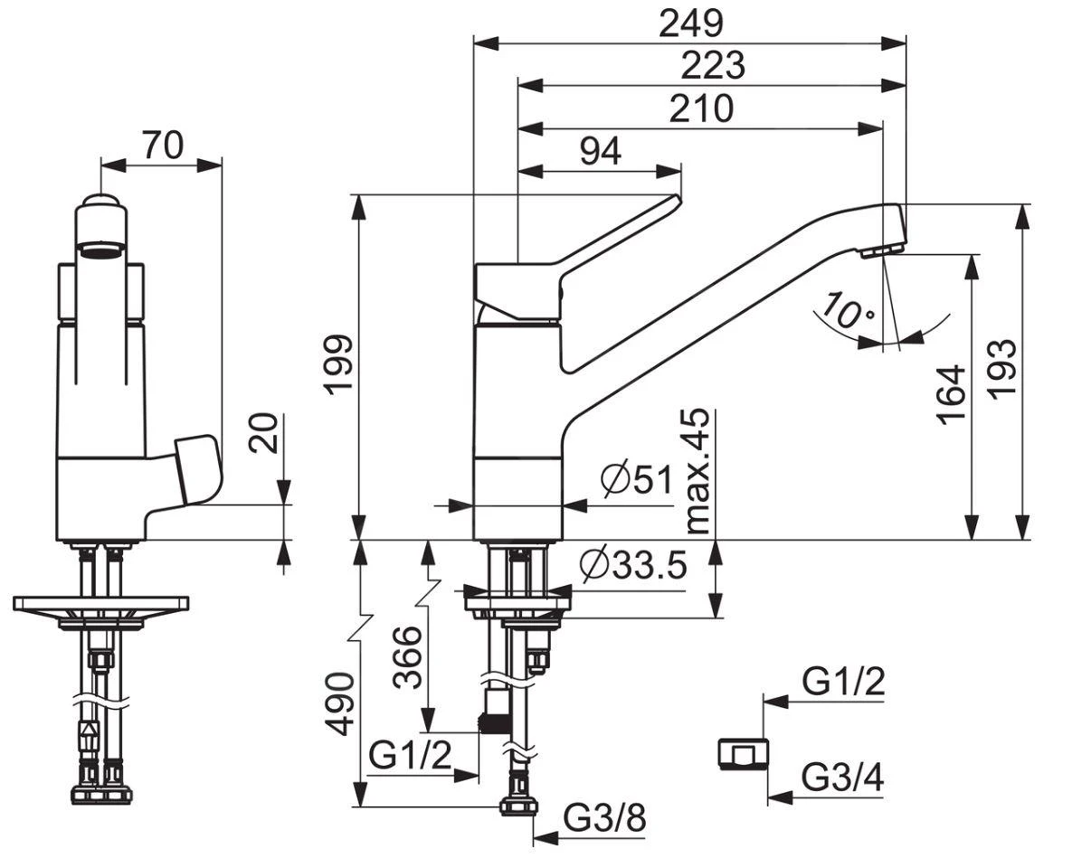 Hansa Primo – Mitigeur D'évier Avec Vanne D'arrêt, Chrome 49502203