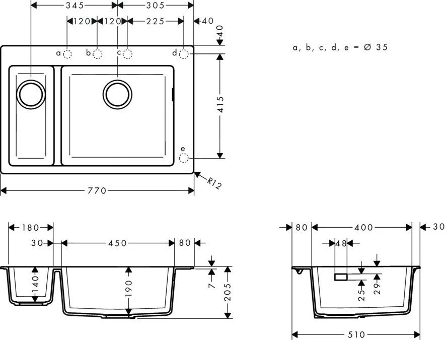 - profondeur d’évier: 190mm