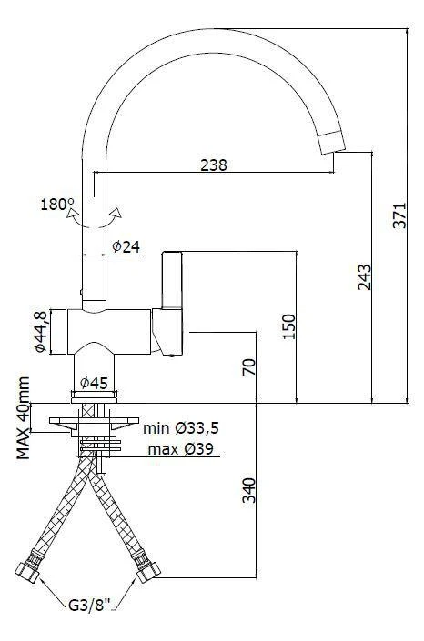 - ensemble de deux flexibles inox G 3/8″ pour le raccord aux robinets d’angle, d’une longueur de 45 cm
