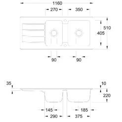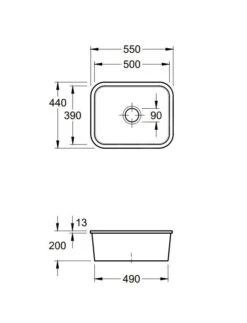 Villeroy & Boch Subway – Évier En Céramique 545×440 Mm Avec Vidage, CeramicPlus, Ebony 331001S5