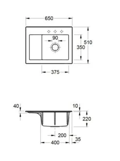 Villeroy & Boch Subway – Évier En Céramique 780×510 Mm Avec Vidage, CeramicPlus, Ebony 671401S5