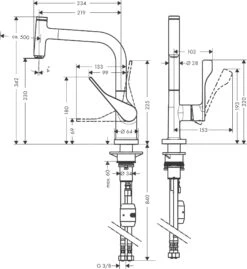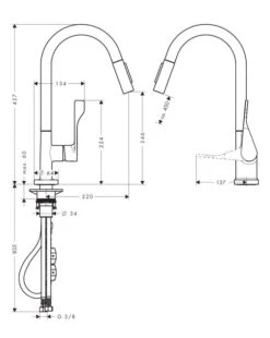 Axor Citterio – Mitigeur D’évier Semi-Pro Avec Douchette Extractible, Chrome 39840000