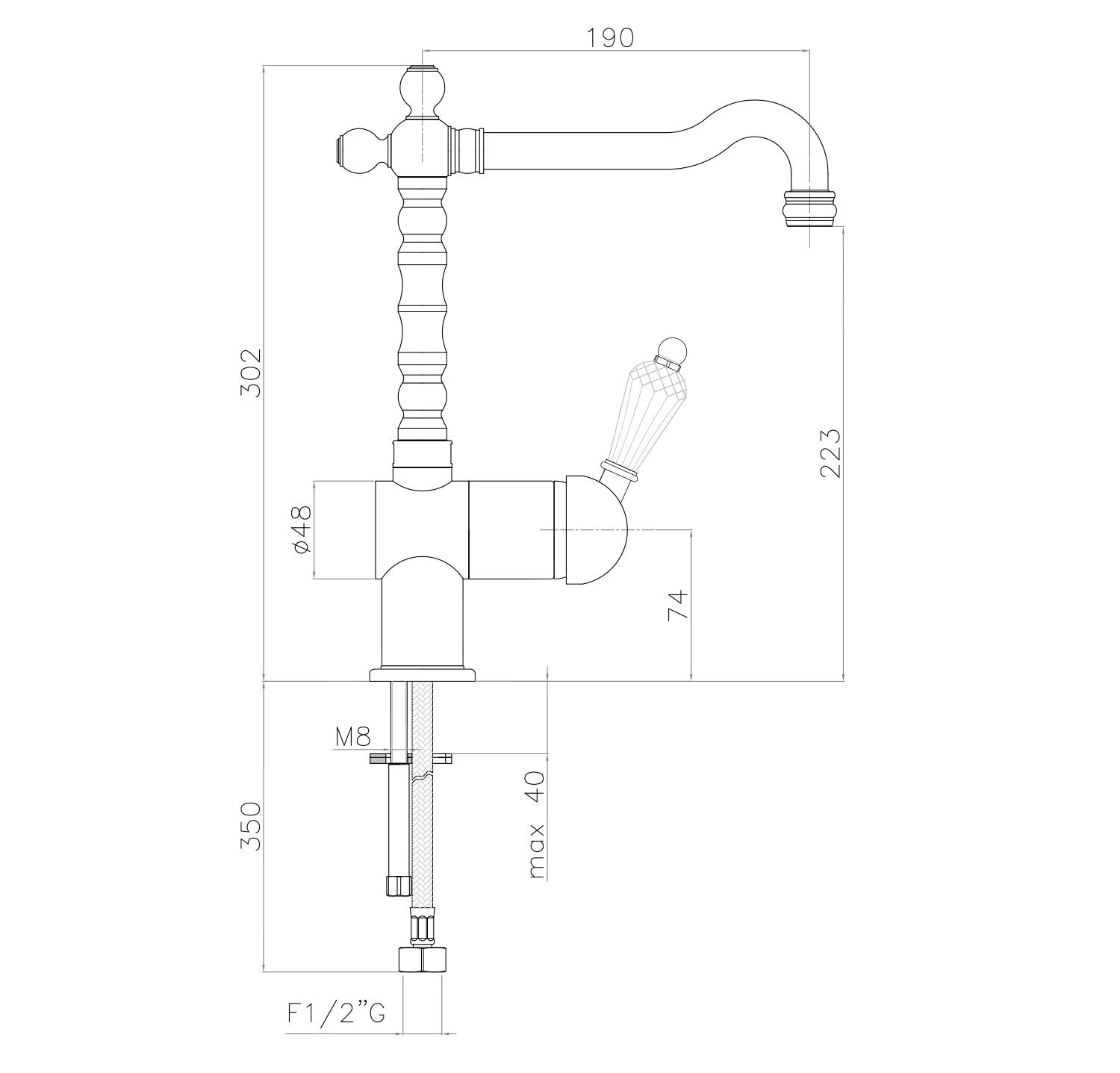 - comprend un flexible d’arrivée d’une longueur 350 mm