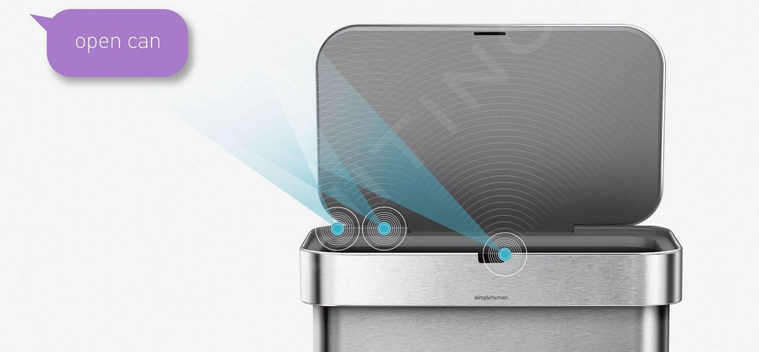 - avec contrôle vocal – réagit aux ordres « open can » pour l’ouverture, « stay open » pour rester ouverte plus longtemps et « close can » pour se refermer