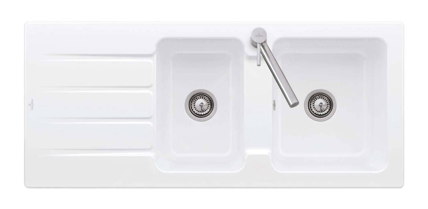 - dimensions totales de l’évier à deux bacs : 1160 × 510 mm