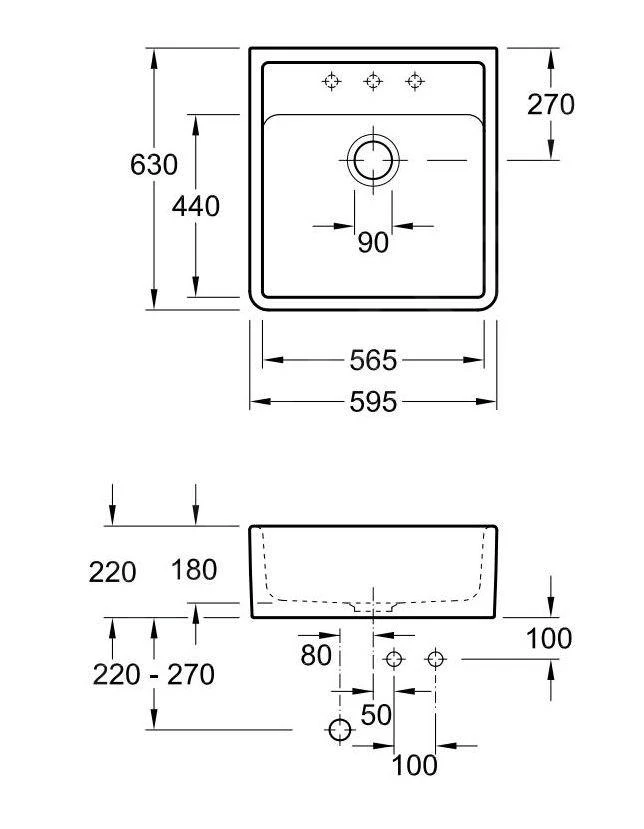 - sans trou pour la robinetterie (jusqu’à trois trous possibles pour la robinetterie)
