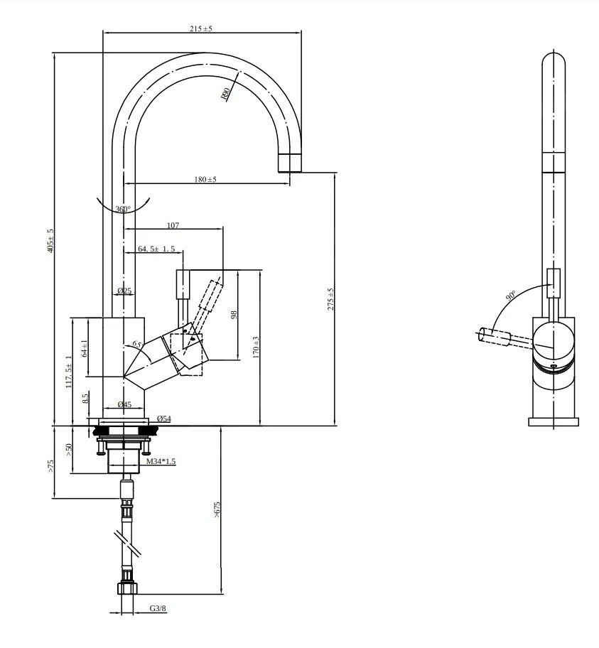 - hauteur du mitigeur : 405 mm
